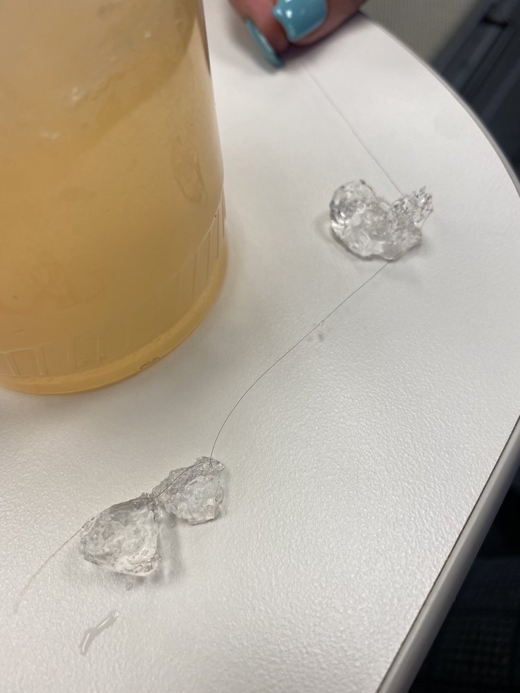 Hielo, jugo de tamarindo, tamarindo y lechera.